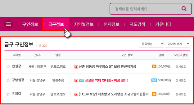 업소 유료서비스는 로그인 후, 구인공고를 등록하셔야 이용 가능합니다. 이용 방법은 아래와 같습니다.
