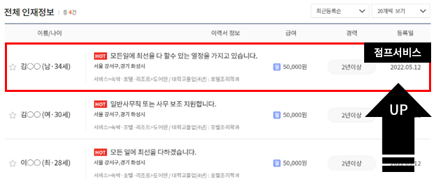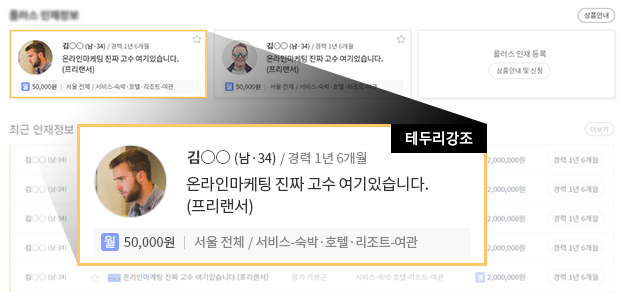 유료서비스는 선택사항이며, 유료서비스를 이용하지 않은 이력서는 일반리스트에 등록됩니다.